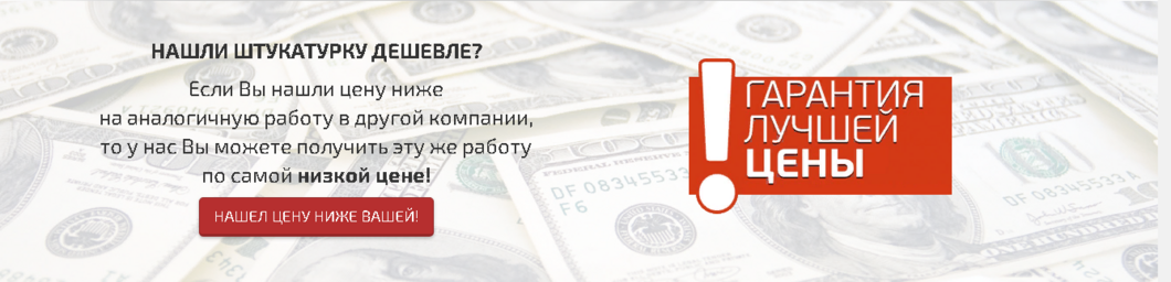 | Штукатурка стен( работа ) 450 руб. за м2 | Штукатурка стен( работа + материал ) 420 руб. за м2 |